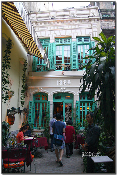千年的古城裡、熱鬧的古街內,一棟建於1928年法國的別墅,在一個浪漫的餐廳院子裡,透過橘子樹能與